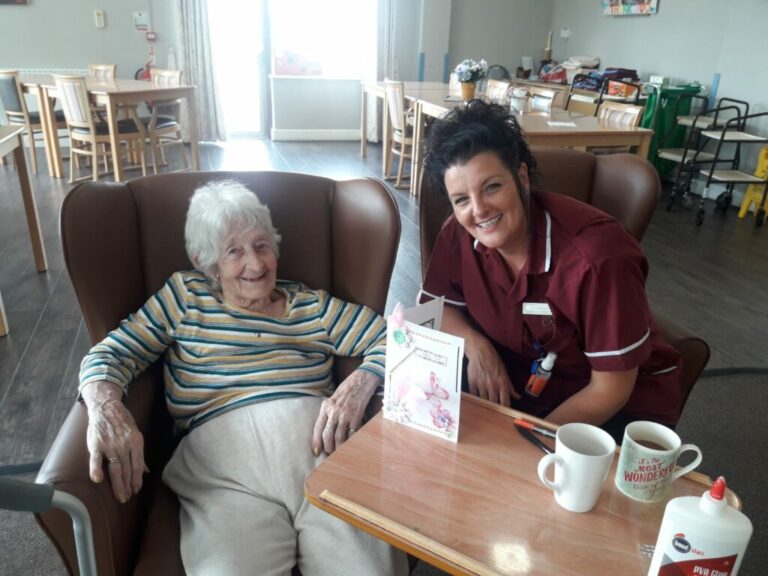The secret to delivering great care is to create great relationships. Across our homes we train our staff in the importance of the relationship and trust between care staff and residents. Here are some pictures from our Meadow Rose home to illustrate this action. First Sophie and Carol painting nails and then Margo and Rachel making cards together. The bonds within our communities have been really important over these last few months and we are determined that they will stay a core part of what we do across all our homes.