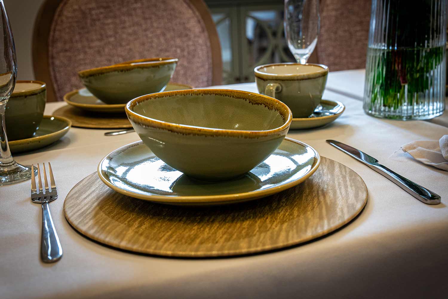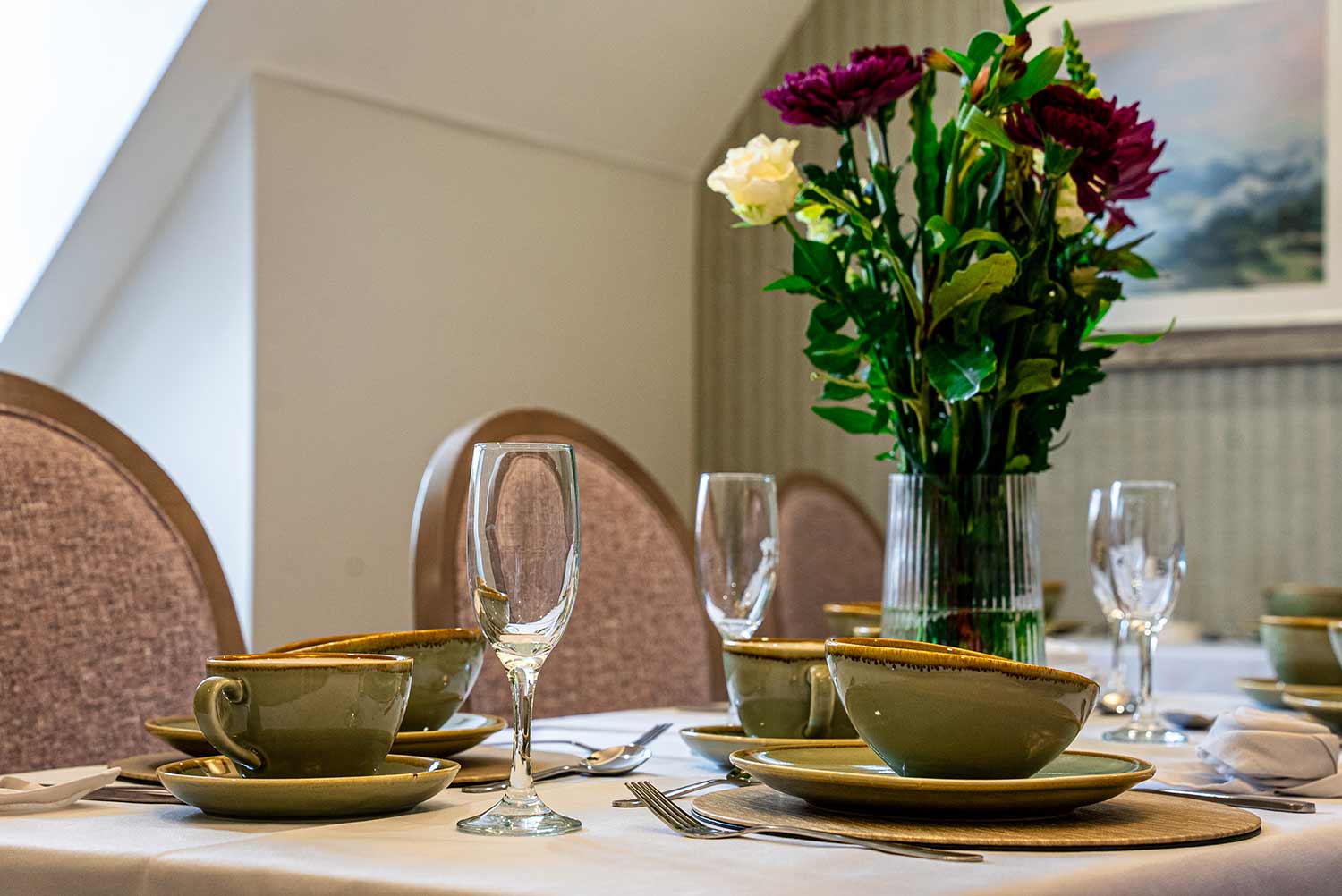 Nutritious, hostess-served meals are always something to look forward to, with freshly prepared dishes – using locally sourced ingredients wherever possible – served with a favourite glass of wine. Light refreshments are readily available throughout the day.