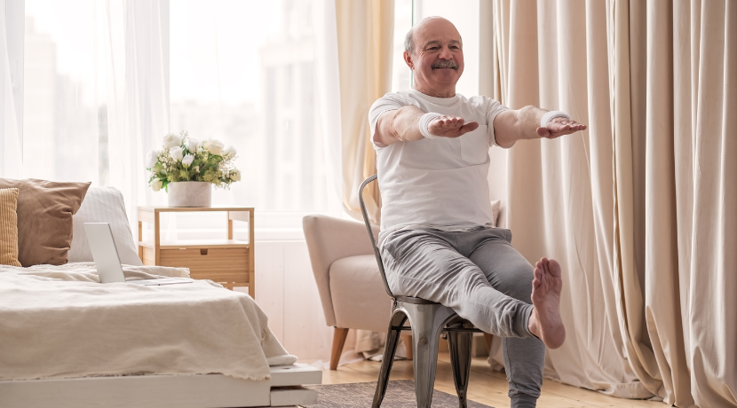 Explore the benefits of incorporating chair yoga into your loved one’s daily routine.